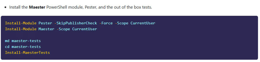 To get started with Maester, installation is straightforward and the team at Maester provide a detailed installation guide: Installation guide