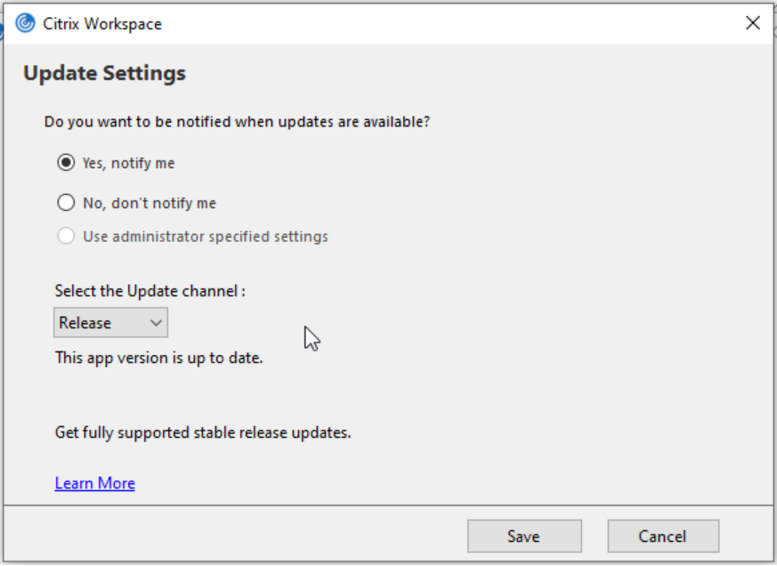 The Workspace app includes built-in auto-update. Enabling it ensures users always receive the latest fixes and enhancements. However, in larger or controlled environments, you may want to disable auto-updates and manage versions centrally instead. This prevents unexpected changes and helps with compatibility testing. https://docs.citrix.com/en-us/citrix-workspace-app-for-windows/updates.html